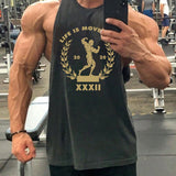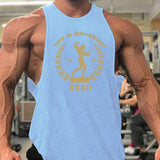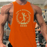 Manfinity fitness camiseta de tirantes deportiva con grafico de texto para hombres, estilo novio, para hacer ejercicio