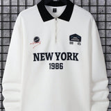 Manfinity hypemode camisa polo de hombre con diseno de letras en el cuello parcheado, camisa casual de manga larga con bloques de color grafico