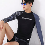 Traje de bano para hombre con mangas largas, estampado separado y pantalones cortos planos para surfear