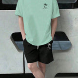 Manfinity chillmode conjunto de camiseta de manga corta y shorts con estampado de arbol de coco para hombre, para salir, grafico, amigos, moda