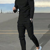 Manfinity homme conjunto de 2 piezas de pantalon y top de manga larga de unicolor para hombres, conjunto de chandal de salir para hombres