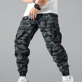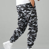 Manfinity hypemode pantalones cargo tipo jogger de corte holgado con estampado de camuflaje para hombre, pantalones casuales largos para salir, regalo para esposo o novio