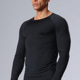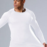 Camiseta deportiva de manga raglan de color solido en estilo de novio, camiseta basica en estilo de novio, top de compresion en estilo de novio
