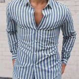 Manfinity modomio camisa casual de manga larga regular, de tela a rayas, de corte holgado para hombre, ideal como regalo para el novio o para el trabajo