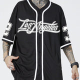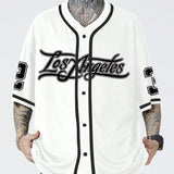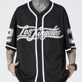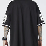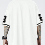 Romwe prep camisa de manga corta para hombre con ribete de contraste e impresion de letras, escolar