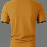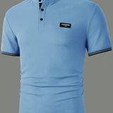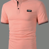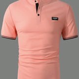 Manfinity homme camiseta polo de manga corta con cuello alto para hombre, diseno grafico de botones en bloques de color para golf negocios casuales marido
