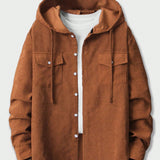 Romwe prep camisa con buzos con capucha de pana de unicolor con cordon para hombres, escuela