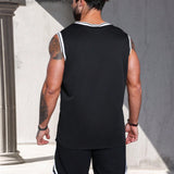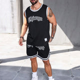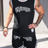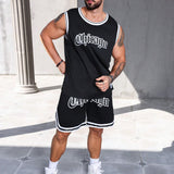 Manfinity conjunto de camiseta sin mangas con ribete con rayas y pantalones cortos de talla grande para hombres con estampado de letras