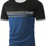 Manfinity homme camiseta casual de manga corta de cuello redondo con bloque de color e impresion de letras para hombre talla grande, para salir