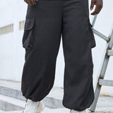 Manfinity homme pantalones anchos para hombre con cintura con cordon y bolsillo con solapa de talla grande