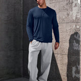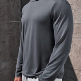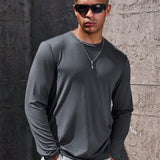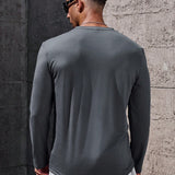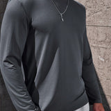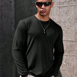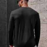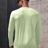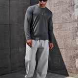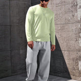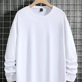 Homme camiseta de manga larga con hombros caidos extragrandes de color liso para hombre