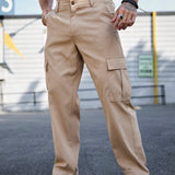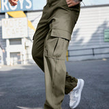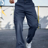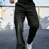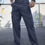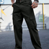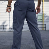 Manfinity homme pantalones de unicolor con bolsillo con solapa para hombres, pantalones rectos de pierna larga de estilo vintage para trabajo, regalo para esposo o novio