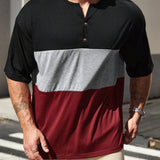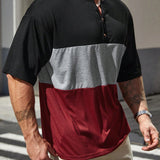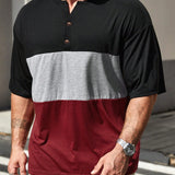 Manfinity homme camiseta informal de manga corta con botones y seccion de color en contraste para hombres de talla grande, para salir