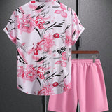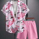 Manfinity rsrt conjunto de camisa con estampado floral y pantalones cortos de color solido, talla grande para hombre