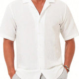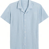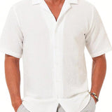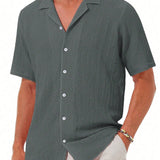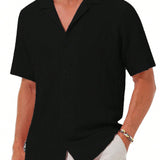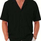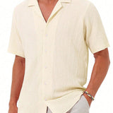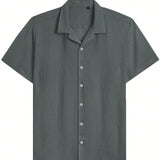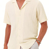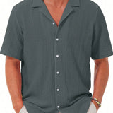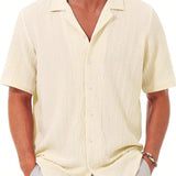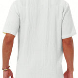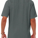 Camisa casual de manga corta con botones y cuello mao para hombre, camisa de verano tipo playa con textura y diseno de moda