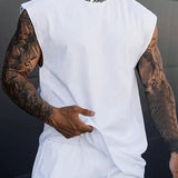 Manfinity homme camiseta sin mangas blanca para entrenamiento de hombre con hombros anchos y estampado de letras