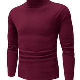 Manfinity rivetrise sueter de cuello alto acanalado liso informal de manga larga para hombre, ideal como regalo para el novio, para salir