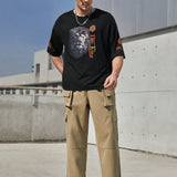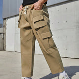 Manfinity emrg pantalones cargo de talla grande con cordon en la cintura para hombre