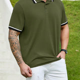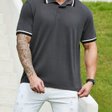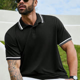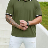 Homme camisa polo de manga corta a rayas para hombres de talla grande, camisa de cuello de golf