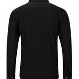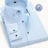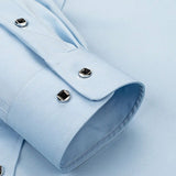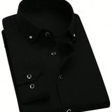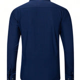 Manfinity mode camisa de vestir de manga larga y unicolor para hombres, camisa lisa azul claro con botones para un regalo de novio