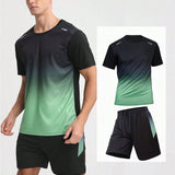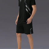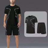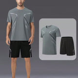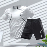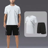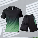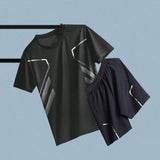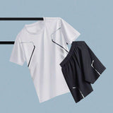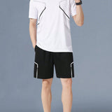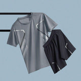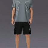Conjunto deportivo de camiseta de manga corta y pantalones cortos de secado rapido de seda de hielo, estilo de novio para hombre, para baloncesto, running, ciclismo y fitness. conjunto de dos piezas estilo de novio para hombre.