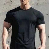 Manfinity sport pwrup camiseta deportiva informal de estilo boyfriend para hombre con estampado de calavera, ideal para hacer ejercicio, gimnasio, grafica, ropa activa, lisa