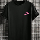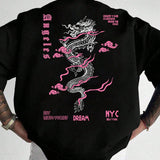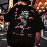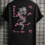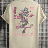 Camiseta casual de cuello redondo con estampado de letras y dragon para hombres