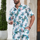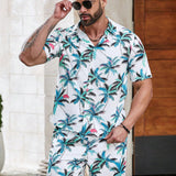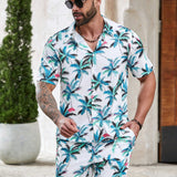 Manfinity rsrt conjunto casual de 2 piezas para hombre, camisa y pantalones cortos con estampado de arboles de coco