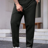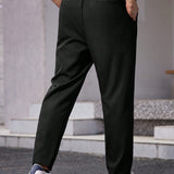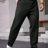 Manfinity rebelgame pantalones casuales tejidos en tallas grandes para hombres, pantalones de corte conico largos de color negro liso para salir
