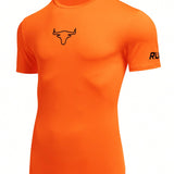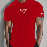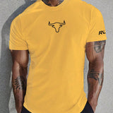 Manfinity fitness camiseta de manga corta deportiva de estilo de novio para hombres con estampado de letra y cabeza de toro, tops basicos de entrenamiento