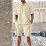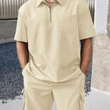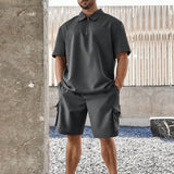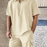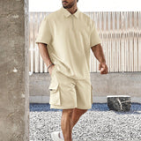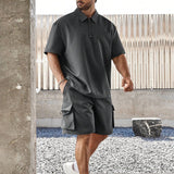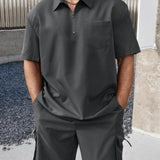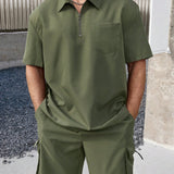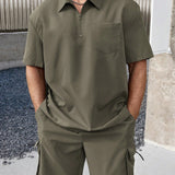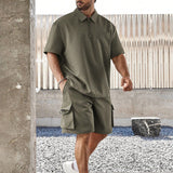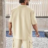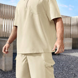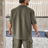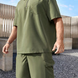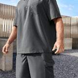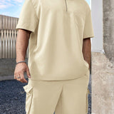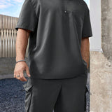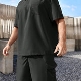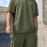 Manfinity homme conjunto de camisa y pantalones cortos de color solido de talla grande para hombres