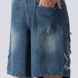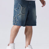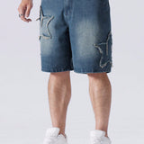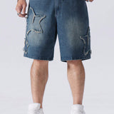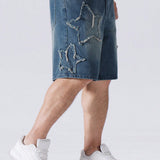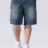 Manfinity hypemode pantalones cortos de mezclilla lavados con diseno de estrellas para hombres de talla grande