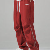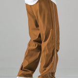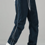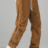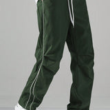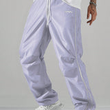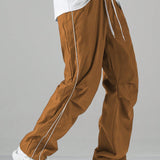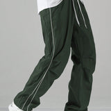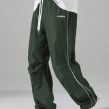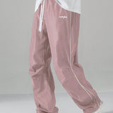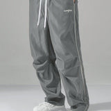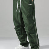 Manfinity hypemode pantalones de hombre con diseno de patron de letras y ribete de contraste, estilo holgado tipo paracaidas y largo, color negro liso para salir