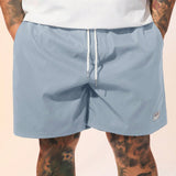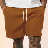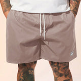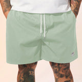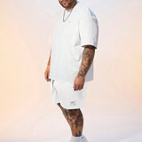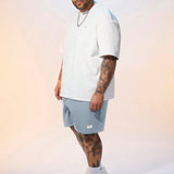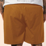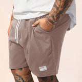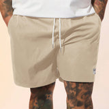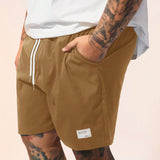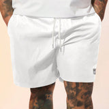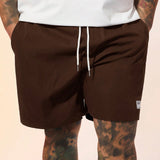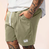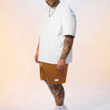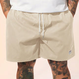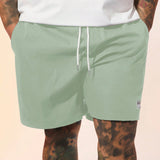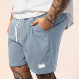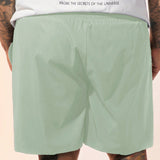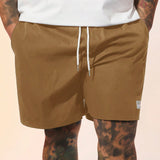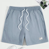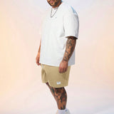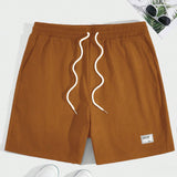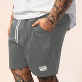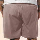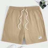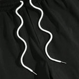 Manfinity cozemod shorts tejidos rectos y casuales para hombres de talla grande con parche de letras, cintura holgada con cordon, longitud de la rodilla, color negro liso, adecuado para salir