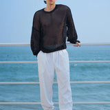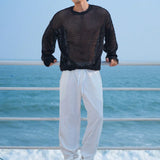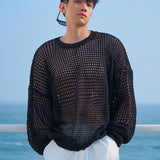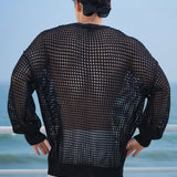 Dazy sueter de cuello redondo, manga larga y hombros caidos con calado para hombre