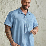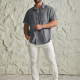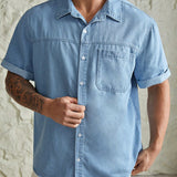 Manfinity cozemod camisa de mezclilla casual de moda para hombre de talla grande, camisa de trabajo lisa de botones azul claro para el esposo