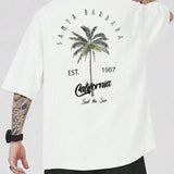 Camiseta de manga corta con estampado de arbol de coco y letras para hombres talla grande