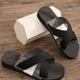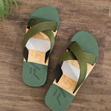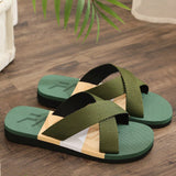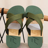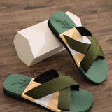 Sandalias para hombre con correa cruzada, parte superior de tela de parche verde, sandalias planas para exteriores para playa de verano, ocasiones casuales
