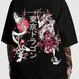 Romwe men anime camiseta de manga corta para hombre con estampado de dragon, adecuada para uso diario en primavera y verano, escuela