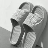 Plana zapatillas de bano rapidos y secos eva solido de color simple para hombres, con abertura para los dedos en forma de dibujos animados