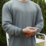 Homme camiseta de manga larga de cuello redondo unicolor de talla grande para hombre