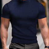 Manfinity homme camiseta de cuello redondo y mangas cortas para hombre unicolor y ajuste delgado con rayas