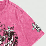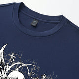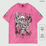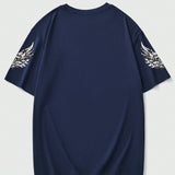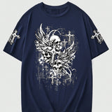 Romwe men goth camiseta de manga corta para hombres con estampado de alas y calavera, para la escuela
