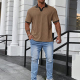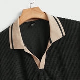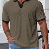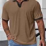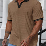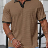 Homme camiseta de polo de manga corta con diseno de remiendo para hombres de talla grande con rayas