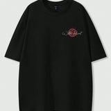 Romwe men goth camiseta oscura gotica con diseno impreso de figura cornuda, adecuada para primavera y verano, para halloween, escuela