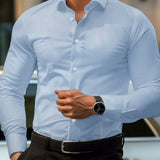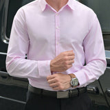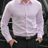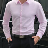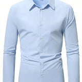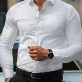 Manfinity homme camisa sencilla de manga larga para hombre, entallada con botones en blanco puro para trabajo de negocios casual de esposo