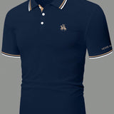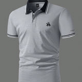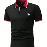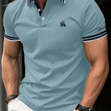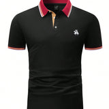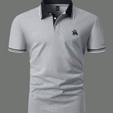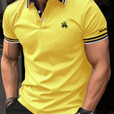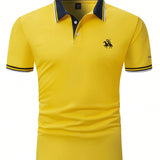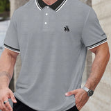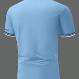 Homme camisa polo de manga corta con media tapeta de botones y un corte amplio de talla grande para hombres, con borde de franjas