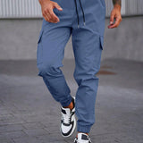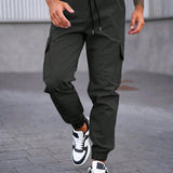 Manfinity legnd pantalones de chandal de carga para hombre con cintura de cordon y color solido