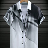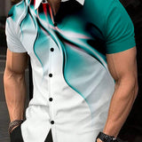 Manfinity homme camisa de manga corta casual para hombre con estampado, primavera y verano, camisa ajustada de botones con cuello grafico y colorido