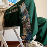 Pantalones jogger casuales para hombre con bordado aleatorio de oso